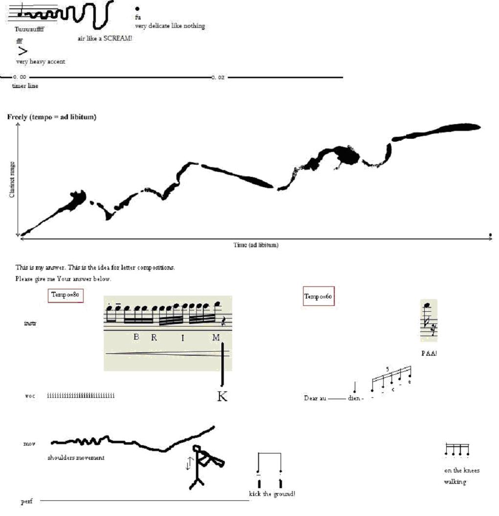 Celem takiego dialogu z „widzem strony” ma być tworzenie „kompozycji-listów” czy też „duetów”, które to spełniać mają funkcję mini „zespołu współpracy” przygotowującego się do Internetowego Festiwalu Metod. Tak pomyślane zestawy problemów muzycznych staną się żywą inicjatywą interaktywności i niepozostawiania materiału etiud bez szansy na ciągłą ewolucję. Naciskam „enter” i wysyłam, budując nowy utwór polegający na zagraniu na klarnecie „dźwięku C + enter + uśmiech”.