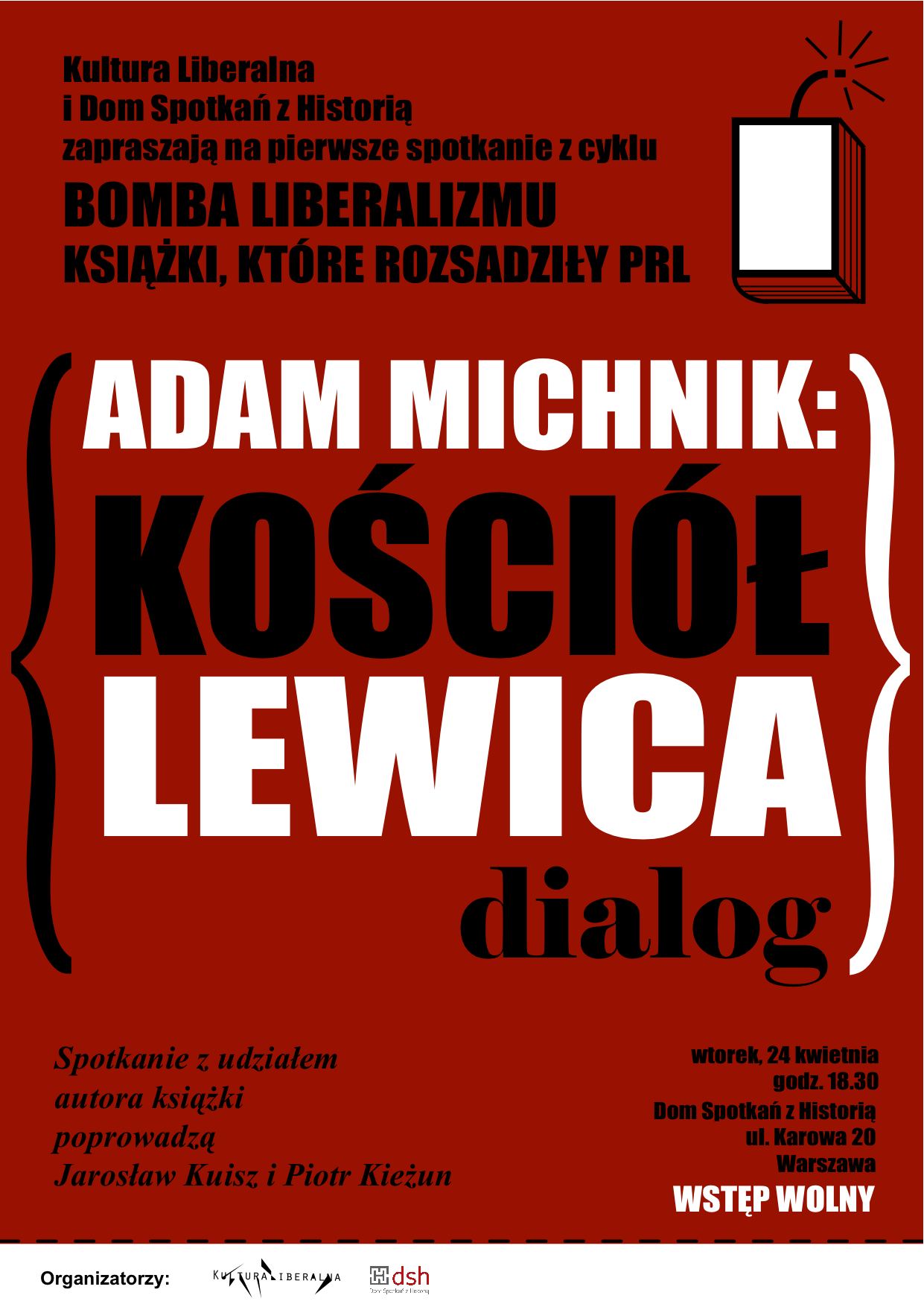 Szanowni Państwo, już dziś, 24 kwietnia o godz. 18.30, w Domu Spotkań z Historią przy ul. Karowej 20 w Warszawie, odbędzie się pierwsze spotkanie z cyklu „Bomba liberalizmu. Książki, które rozsadziły PRL”. Gościem będzie Adam Michnik, działacz polityczny i redaktor naczelny „Gazety Wyborczej”, autor książki „Kościół, lewica, dialog”. Spotkanie poprowadzą członkowie naszej…