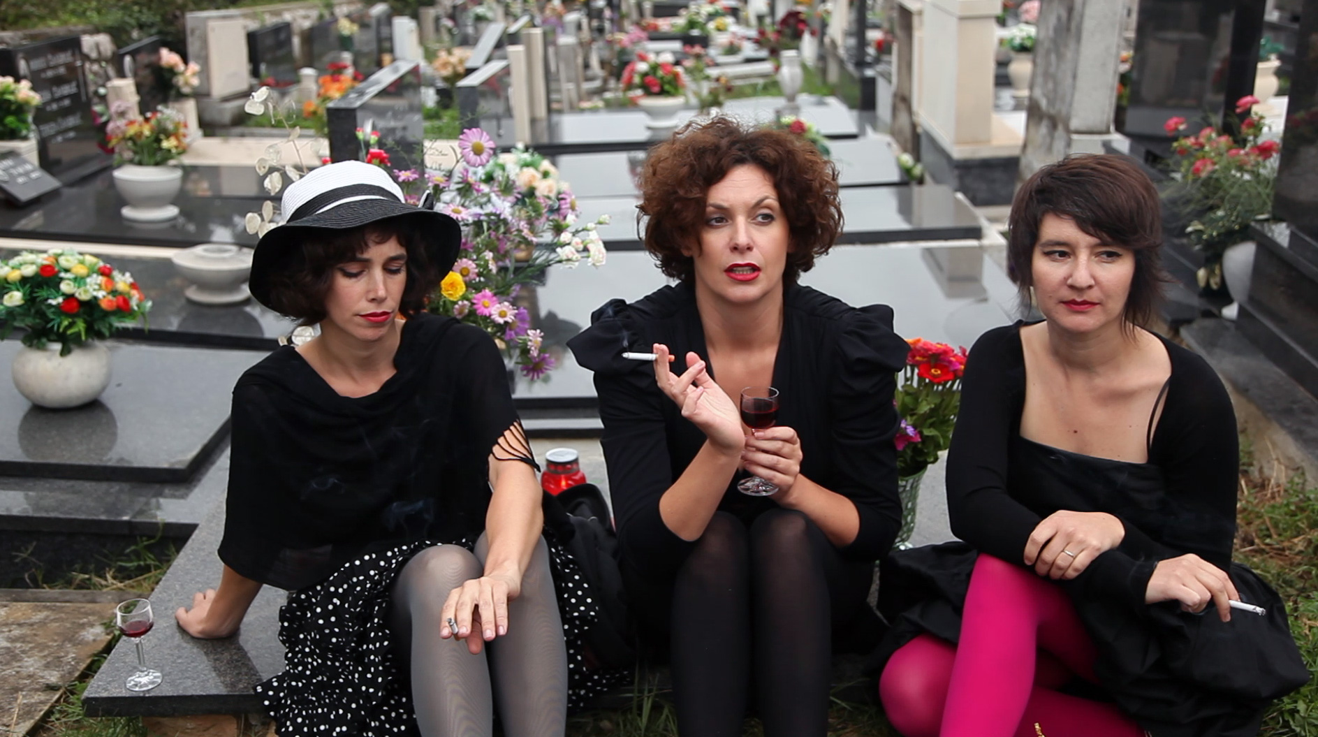 W chorwackim dokumencie Żelijki Sukovej nie pada słowo o wojennej przeszłości Bałkanów, jednak jej ciężar zdaje się wisieć nad bohaterami opowieści. Zadanie radzenia sobie z tą historyczną żałobą sprowadzone zostaje do wyzwania, jakie podejmują trzy wnuczki-artystki na grobie swej babci; postanawiają go udekorować odpowiednio do ich pamięci o zmarłej – jako silnej, wyemancypowanej kobiecie, której życiowej odwadze być może zawdzięczają to, kim same są dzisiaj. Cel ten postanawiają zrealizować na swój sposób: przebrane niczym trzy muzy Almodovara, do opuszczonego mieszkania babci zapraszają jej sąsiadki na osobliwą electro-stypę, podczas której zorganizują konkurs na projekt dekoracji pomnika. Nieporadne rysunki podchmielonych żałobniczek podsuwają kolejne pomysły: od różańca i wizerunku papieża, po penisokształtne wazony i gipsowe gołębie. W tym rozpętanym karnawale przywiązanie wnuczek do babci wyraża się w afirmacji tego, co w niej najbardziej cielesne: wreszcie siostry ruszają na cmentarz, by udekorować pomnik Jana Pawła II sercem pełnym świecidełek i nadgniłych warzyw, oraz ustawić zwycięską dekorację w kształcie krzyża na grobie babki. Całość akcji zamykają performansem na portowym wysypisku śmieci, w czasie którego sąsiadki udają rzeczywiste zawodzenie do wtóru elektronicznego podkładu czeskiego zespołu „Midi Lidi.”