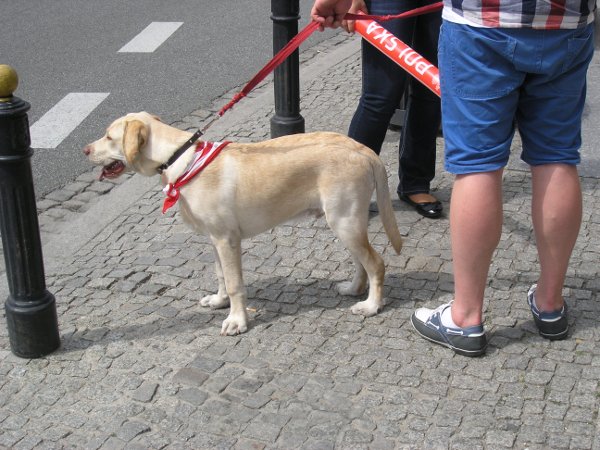 Pisząc o dekoracji miasta, nie sposób nie wspomnieć o jednym. To chyba najbardziej widoczny znak w przestrzeni miejskiej, świadczący o obecności tych mistrzostw – barwy narodowe. Grupy kibiców ubrane na biało-czerwono lub niebiesko-biało (barwy Grecji) spacerujące ulicami Warszawy w ciągu dnia oraz wielki zbity tłum maszerujący w kierunku Stadionu Narodowego przed meczem – to chyba dwa najtrwalsze wspomnienia z obserwacji miasta w trakcie tego dnia. Dekoracje przyjmują wszystkie możliwe formy – od odpowiednio przystrojonych balkonów, poprzez flagi mocowane do samochodów, po subtelne akcenty w „przyodzianiu”… zwierząt. Dzieje się to, o czym pisał Michael Billig w „Codziennym powiewaniu flagą ojczyzny” – naród jednoczy się pod flagą swojej narodowej drużyny sportowej.