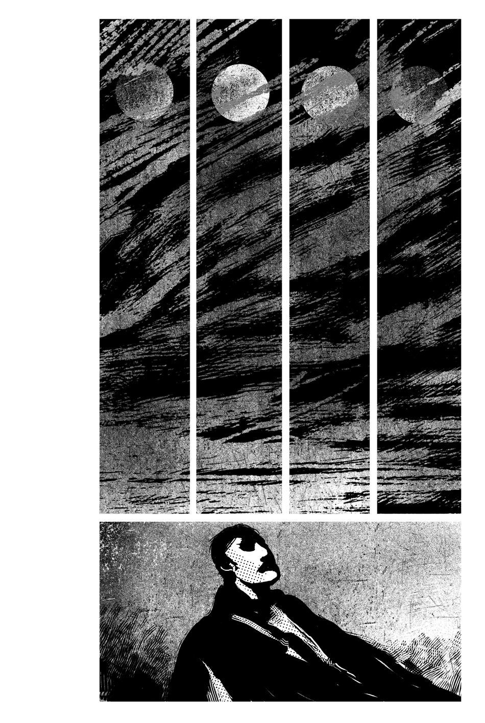 Warstwa literacka komiksu przeplata się z warstwą graficzną, chociaż umieszczenie druku na sąsiednich stronach pozornie rozdziela te dwie linie narracyjne. Takie pozostawienie tekstu poza obrazem
