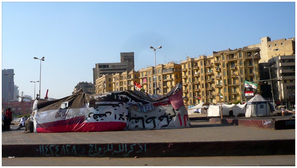 Na plac Tahrir pierwszy raz trafiłem o piątej rano, jadąc prosto z lotniska z plecakiem i szeroko otwartymi ze zdumienia oczami. Zamiast miejsca będącego sceną najważniejszych zdarzeń egipskiej rewolucji zobaczyłem siedlisko bezdomnych. Jego konstrukcja wyglądała na prowizoryczną, ale tak naprawdę składała się z solidnie obudowanych wyszperaną zewsząd materią namiotów i legowisk, w których spali ludzie. W czasie wystąpień mieszkało tu dużo więcej osób. Tłum nie schodził z placu, zdarzały się bijatyki, płonęły kukły Mubaraka. Teraz zostali tylko ci, którzy zawsze tu byli.