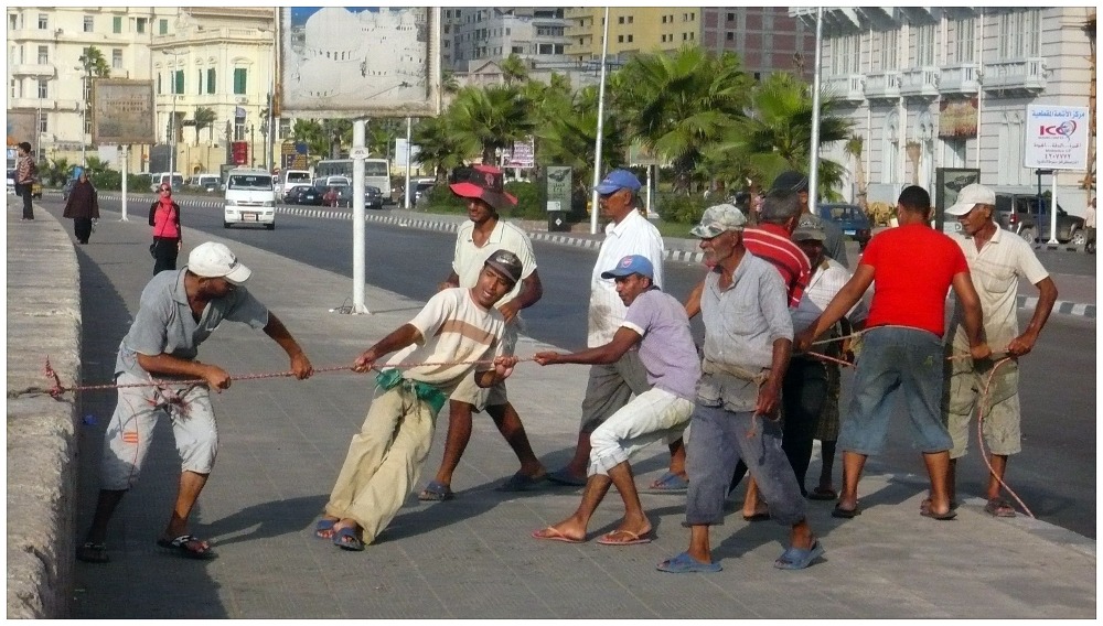 W ciągu dnia nie w głowie ludziom polityka. Trzeba zarobić pieniądze. Wszystko dzieje się na ulicy. To tam się handluje, naprawia samochody, strzyże, czyści buty, tka dywany i łowi ryby. Podziwiałem ciężko pracujących w czterdziestostopniowym upale Arabów, którzy w czasie ramadanu zachowywali post do wieczora. Nie spotkamy w Europie takich obrazków.