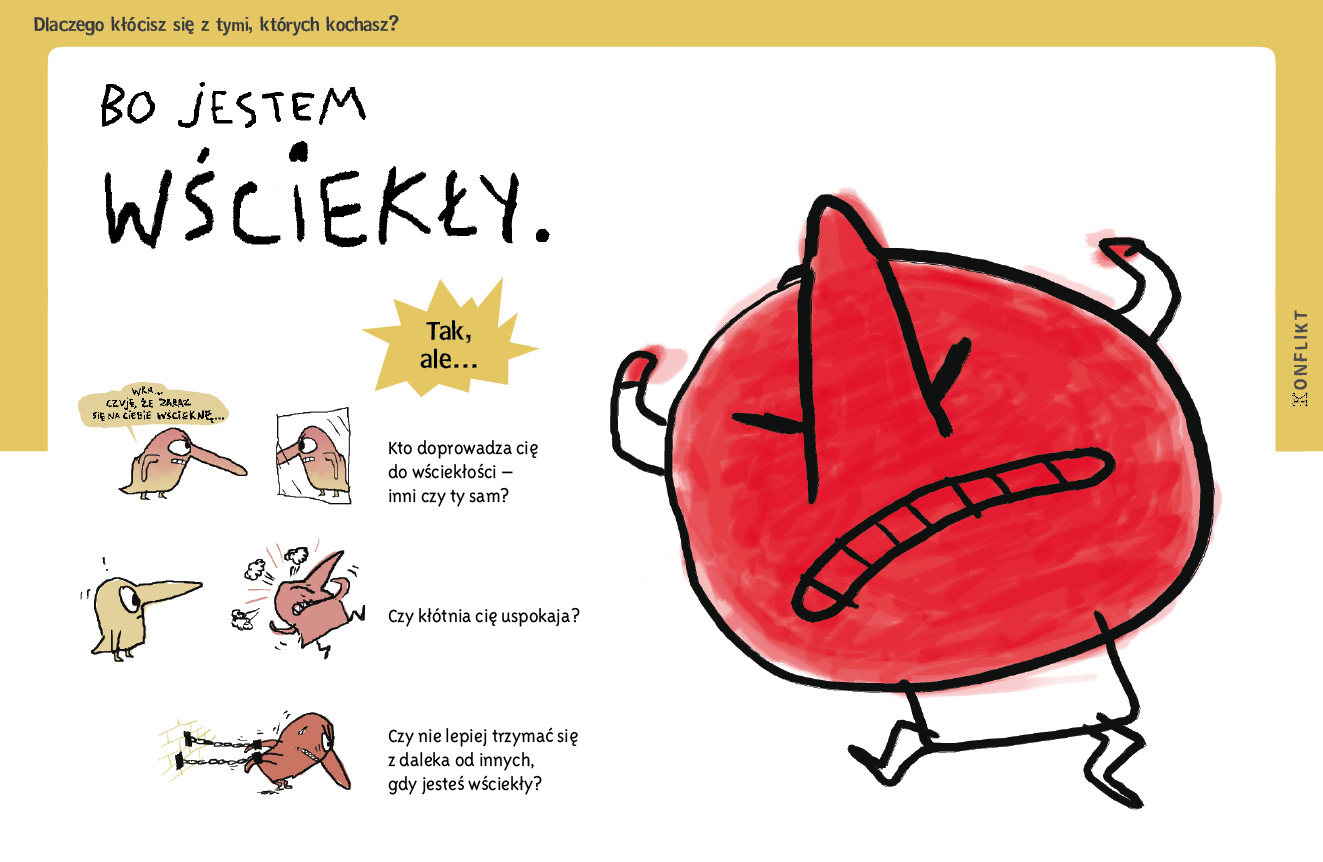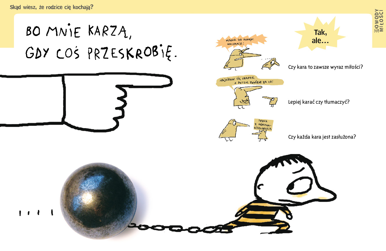 Moja jedyna niepewność dotyczy sposobu jej używania: nie mogę sobie wyobrazić sytuacji, gdy sadzamy dziatwę, by tu i teraz poczytać o przyjaźni i miłości. Dużo naturalniejsza będzie zapewne samodzielna lektura „Uczuć…”, gdy dziecko spróbuje samo poobracać nurtujące je zagadnienie niczym kostkę Rubika, lub wykorzystanie pomysłów na niezobowiązującą dyskusję w parku czy w wannie.Ale na obcowaniu z „Uczuciami…” skorzystają nie tylko dzieci. Przy pomocy prostego i precyzyjnego języka Brenifier zmusza rodziców do nieuchronnego rachunku sumienia. Czy rozmawiam z dzieckiem o uczuciach? Jak często mówię mu, że je kocham? Czy potrafię powiedzieć dziecku o moich pozostałych emocjach? Dlaczego kolejny raz robię wykład, zamiast tak naprawdę słuchać? I chyba najtrudniejsze pytanie: czyje uczucia są w naszym domu najważniejsze?