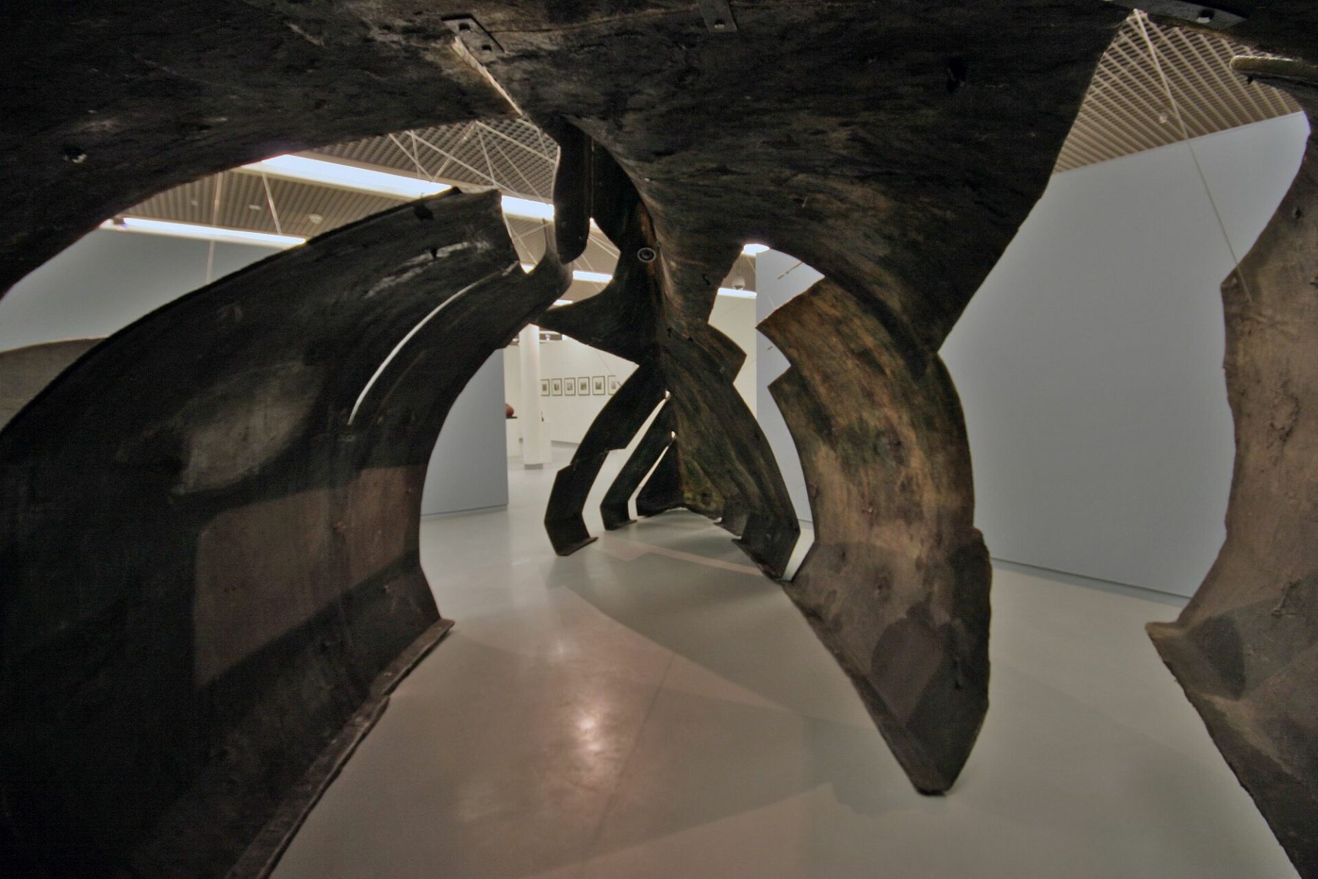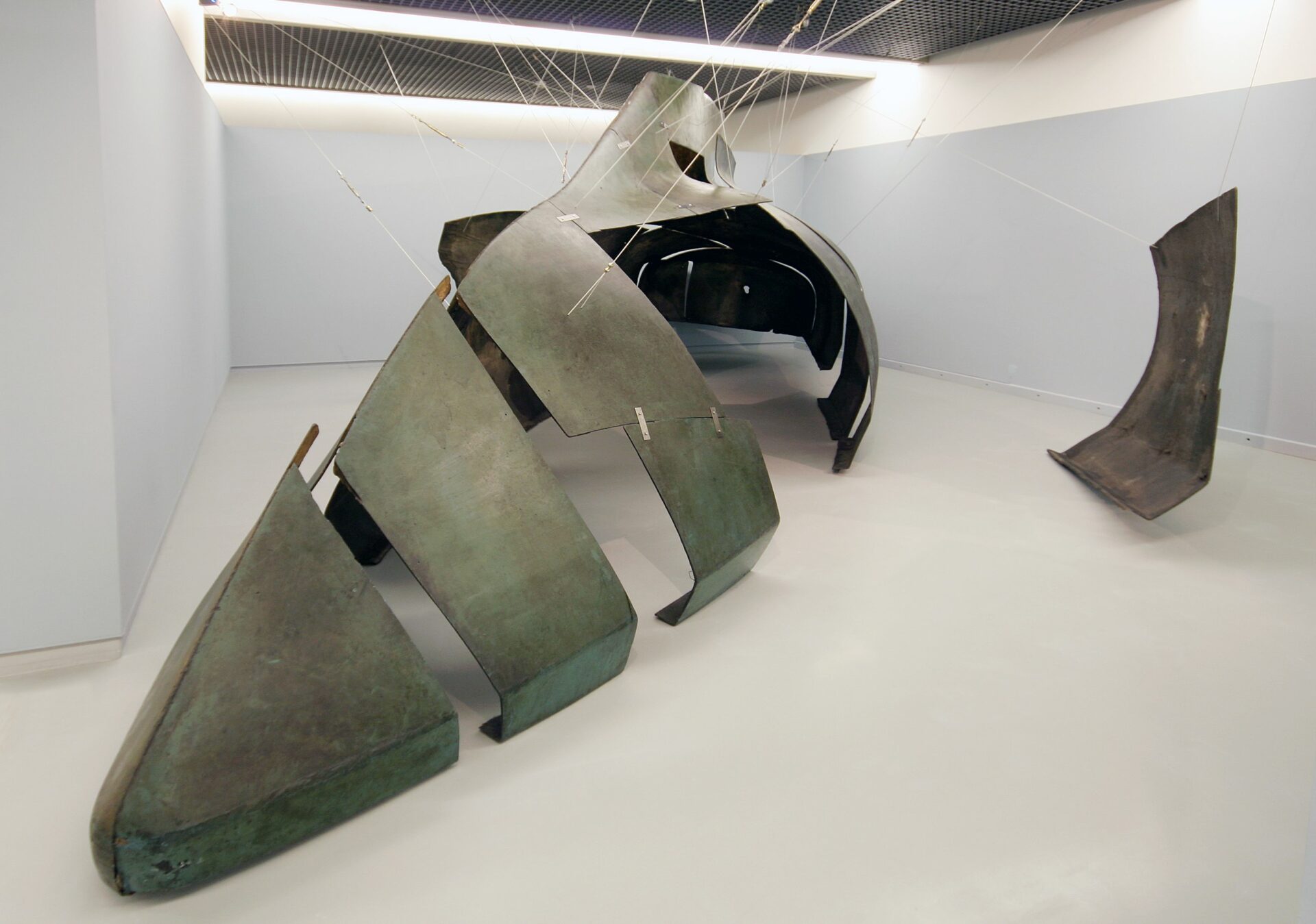 Pierwszym aktem rzeźbiarskim był gest agresywny – destrukcja pierwotnej formy. Bednarski pociął znaleziony kadłub na szesnaście fragmentów, które nazywa „wycinkami na nieskończoność”. W roku 1987 zaprezentował je m.in. pod postacią rozłożonych na podłodze skorup – jako układ horyzontalny, rozproszony i skrajnie potencjalny. Od tamtej pory artysta wykonał w sumie dziesięć wariantów instalacji – m.in. w Rzymie (1988), Berlinie (1989), Budapeszcie (1997) oraz stołecznej Zachęcie (2000). Jak sam podkreśla, każda z nich była projektem indywidualnym – serią niepowtarzalnych konstrukcyjnych decyzji. Dlaczego to takie ważne? Ponieważ za każdym razem była to inna rzeźba w sensie modernistycznym – inne rozegranie relacji przestrzennych; stworzenie innego pola interakcji z widzem. W zależności od miejsca te same fragmenty kadłuba zaczynały współtworzyć niepowtarzalną całość, narzucając odmienny sposób doświadczenia.