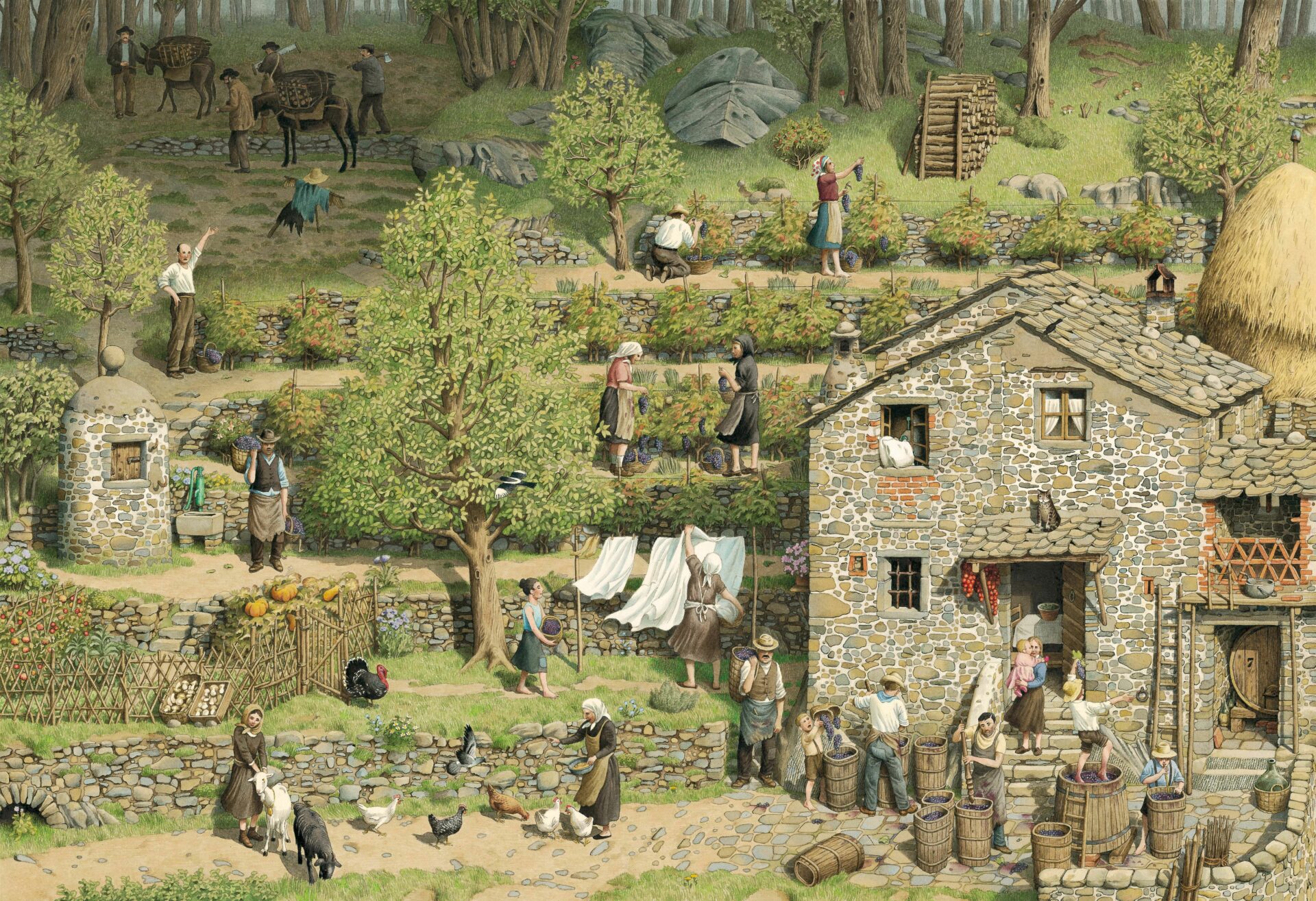 Kilkulatek natomiast potraktuje „Dom” jako wspaniałą książkę obrazkową, w której na każdej stronie znajdzie mnóstwo szczegółów – postaci ludzkich, zwierząt, przedmiotów do obserwowania i odnajdywania. Ułatwi mu to wysokiej jakości szata graficzna, duży format, zszywane stronice. Starsze dziecko zachwyci się możliwością śledzenia przemian zachodzących w samym budynku i w jego okolicy, na każdej stronie będzie z zapałem wypatrywać różnic i oznak upływającego czasu. To wspaniałe ćwiczenie dla spostrzegawczości i wyobraźni. Moja córka z niezmienną fascynacją sięga po takie książki, do których należy także „Belonging” Jeannie Baker, gdzie losy pewnej rodziny zostały opowiedziane ilustracjami przedstawiającymi ulegający ciągłej zmianie widok z tego samego okna. To wychwytywanie zmian w obrazie rzeczywistości urzeka i fascynuje dzieci.