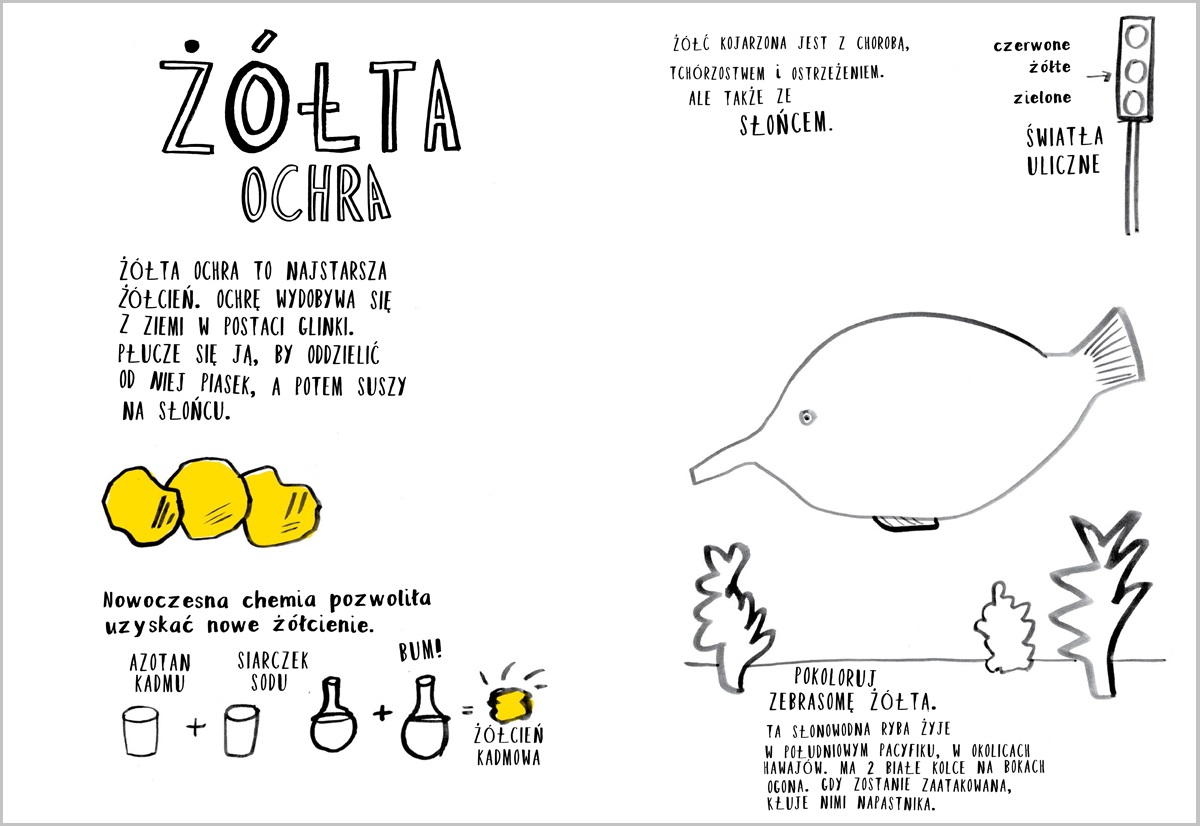 Najmłodsi, niezbyt pewni swoich umiejętności, dodadzą sobie animuszu przy niby-zwyczajnych kolorowankach. Niby-zwyczajnych, dlatego, że zanim wezmą do ręki kredki, aby pokolorować motylka Morpho menelaus (autorka zaskoczyła mnie tego typu szczegółami niejednokrotnie), mogą posłuchać opowiastki o lapis lazuli, dodając kolorków głowie Kleopatry, dowiedzieć się, że purpurę tyryjską pozyskiwano ze ślimaków, czy „złapać tęczę” na kartkę papieru.