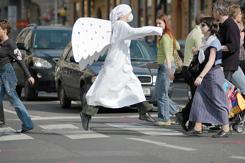 „Auto*mat” Martina Marečka to unikatowy zapis wieloletniej walki ruchu społecznego o dostosowanie praskiego chaosu komunikacyjnego do (skromnych) potrzeb rowerzystów. To cierpliwie przeprowadzona dokumentacja urzekającej pomysłowości praskich miejskich aktywistów, którzy w walce o zmianę świadomości społecznej sięgają po środki performansu. Swoje postulaty wyrażają chociażby przebierając się za anioły i spacerując po praskich ulicach po tym, jak ginie na nich jeden z rowerzystów, czy przybywając umorusanym fekaliami autem na zlot tuningowanych samochodów. „Auto*mat” to jednak nie tyle współczesne zastosowanie teorii fekalizmu Egona Bondy’ego: to przede wszystkim historia walki o autonomię dokumentalisty uwikłanego w proces zmiany społecznej. Twórca, Martin Mareček, szybko odkrywa potęgę kamery w nakłanianiu do współpracy najbardziej topornych miejskich polityków – nawet prezydent miasta okazuje się znacznie bardziej skłonny do życzliwych (choć ostatecznie niespełnionych) deklaracji, mając świadomość, że jego słowa są rejestrowane. Kamera dokumentalisty to także narzędzie demaskowania medialnego szaleństwa polityków – bezlitośnie obnaża kicz i hipokryzję festyniarskich wieców przedwyborczych czy pompatycznego otwarcia tunelu rozrastającej się pod Pragą autostrady. Z drugiej jednak strony, „Auto*mat” staje się także świadectwem trudnej pozycji reżysera podejmującego się dokumentacji ruchu, którego przez pewien czas był rzecznikiem. Martin Mareček po kilku latach rozwijania inicjatywy „Auto*matu” odsunął się od niej – także w imię pełnego wyrażenia swego autorskiego zdania, wolnego od nacisków nie tylko polityków, ale i ideologii, której był jednym ze współautorów. Dokument, będący świadectwem jego kilkuletniego zaangażowania, to nie tylko znakomity podręcznik metod miejskiego aktywizmu, któremu przyklasnąłby David Harvey, ale i subtelny, a zarazem odważny portret autora poszukującego wolności twórczej.