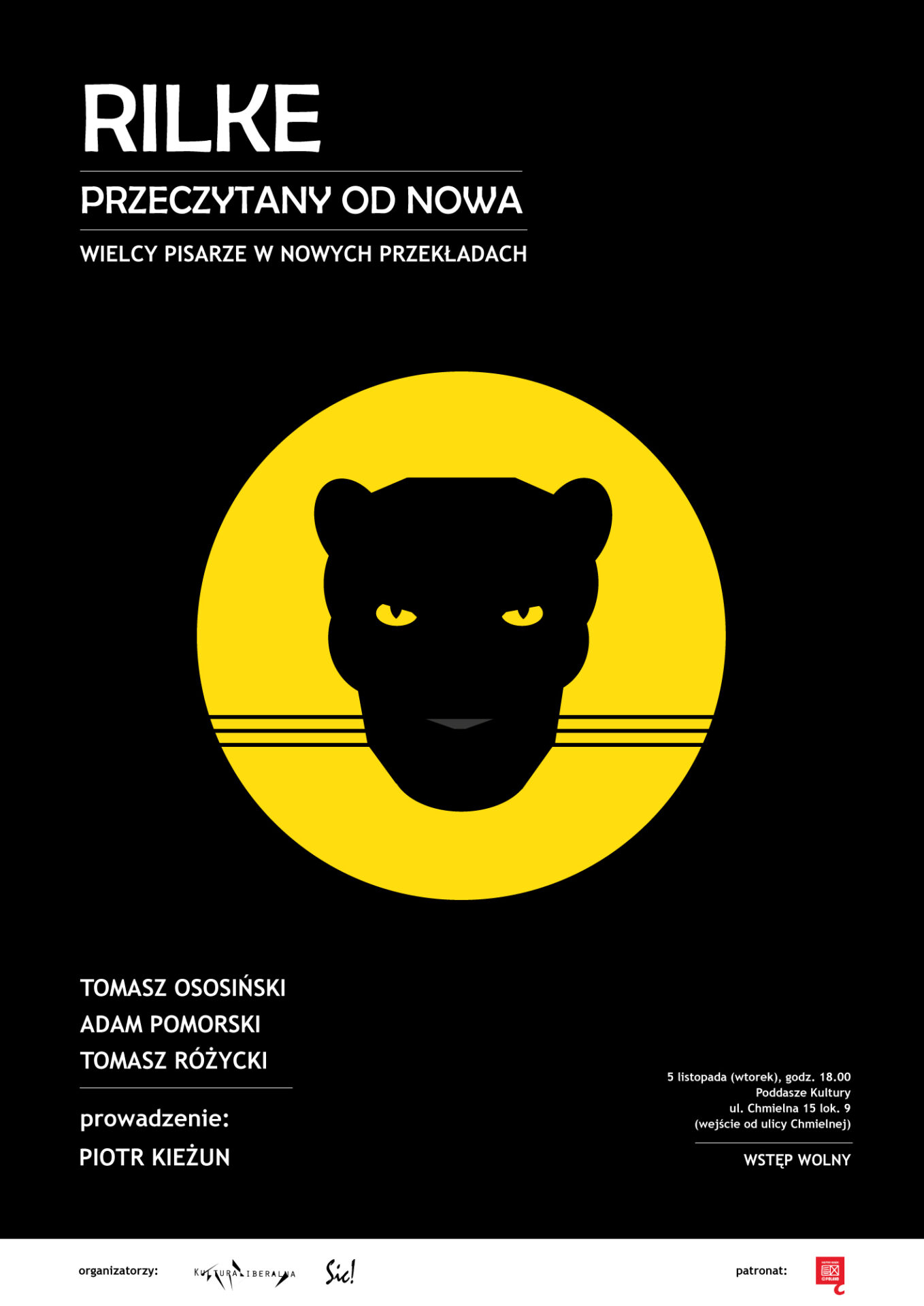„Kultura Liberalna” i Wydawnictwo Sic! zapraszają na spotkanie RILKE PRZECZYTANY OD NOWA Wielcy pisarze w nowych przekładach W jaki sposób poezja Rilkego jest obecna we współczesnej literaturze? Przed jakimi dylematami stoją tłumacze jego twórczości? Jak życiorys poety wpłynął na jego artystyczne i pisarskie wybory?…