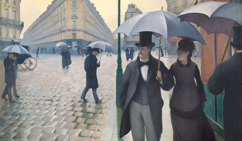 * Tekst otwiera obraz Gustave’a Caillebotte’a „Paryż. Deszczowy dzień”, 1877, olej na płótnie , Art Institute of Chicago.
