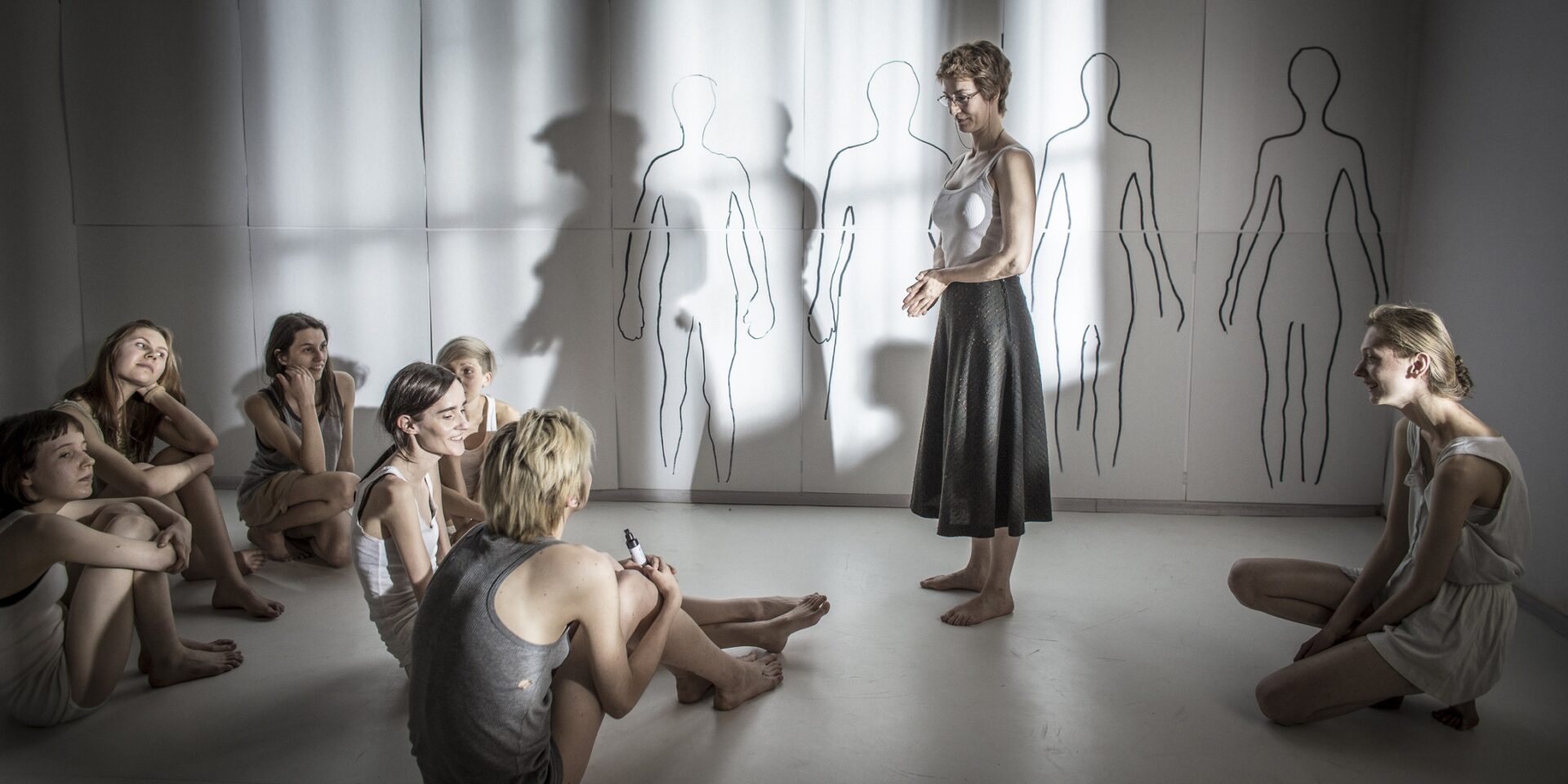 Warto tu powtórzyć, że dopiero wspólnie obie postaci cielesności składają się na całe ciało. Ilustrację tego znajdujemy w prowadzonej przez Annę terapii. Razem z pacjentkami stoi przed ścianą z zaznaczonymi na niej konturami ludzkich postaci. Są one niewyraźnie i obce, tak jakby dopiero co zaczęły się przejawiać. Jedna z dziewczyn mówi: „Bez kształtu, mnie to obrzydza. Nie ma pani ramion, nie ma linii, nie chce pani być sobą, zgubiła pani swoją osobowość”. Można tu dopowiedzieć: „Nie jest pani w pełni ciałem”.