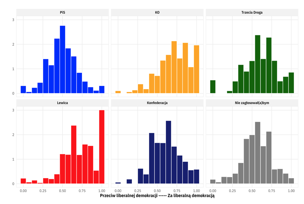 Możemy powiedzieć, że w większości przypadków polscy wyborcy chętniej wybierają kandydata, który nie odrzuca zasad liberalnej demokracji, niż takiego, który je odrzuca, choć różnica nie zawsze jest znacząca. Istnieją jednak znaczące różnice na poziomie partyjnym. Ci, którzy głosowali na KO, Lewicę i Trzecią Drogę, byli bardziej skłonni ukarać nieliberalnego kandydata, przy czym szczególnie odrzucali takich kandydatów zwolennicy Lewicy.