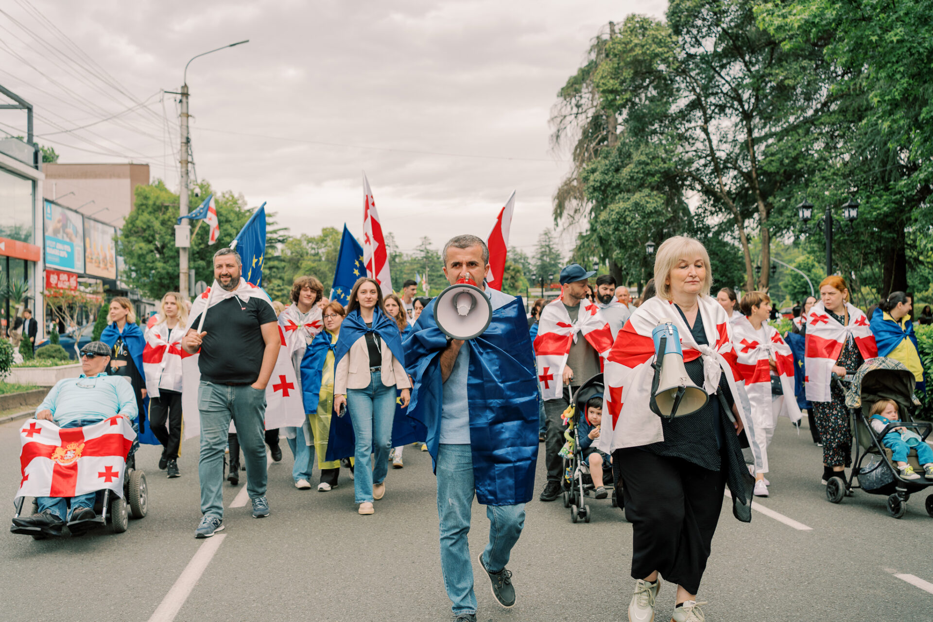 Na protestach w Zugdidi stale obecne były także osoby z niepełnosprawnościami. Jednym z nich jest założyciel Stowarzyszenia Integracji i Rozwoju Osób z Ograniczonymi Możliwościami, Changi Ruslan Sadżaia. „Biorę udział w demonstracjach, bo czuję potrzebę walki z dyskryminującym prawem, które, mimo ogólnego postępu w kraju, przeszkadza w kształtowaniu lepszych warunków życia dla osób z niepełnosprawnościami. Oddala nas ono od państw, które pomogły nam wprowadzić wiele dobrych zmian, i od tych, którzy dają nam naoczne przykłady, jak bronić praw osób z niepełnosprawnościami i praw człowieka w ogóle, równości i sprawiedliwego, i bezpiecznego świata dla wszystkich” – uważa Rusłan.