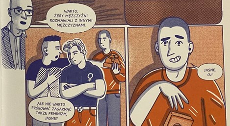 Komiks ma jednak również swoje wady. Pod pewnymi względami budzi on bowiem mieszane uczucia. Przede wszystkim prawie wszystkimi autorami i pomysłodawcą tego dzieła są… mężczyźni. Jedyną kobietą w zespole, wymienioną w sekcji „O autorach”, jest ilustratorka Julija Wus – jedna na cztery osoby. Jak na książkę o feminizmie trochę zbyt zmaskulinizowany to skład Pod tym kątem szczególnie zabawny jest początek komiksu, gdzie widzimy, jak postacie mężczyzn-autorów rozprawiają o tym, jak będą wyjaśniać na dalszych stronach feminizm i go omawiać. W innym z kolei fragmencie ci sami mężczyźni uczą innych mężczyzn, że nie powinni sobie feminizmu przywłaszczać. Jest w tym pewien niezamierzony komizm.