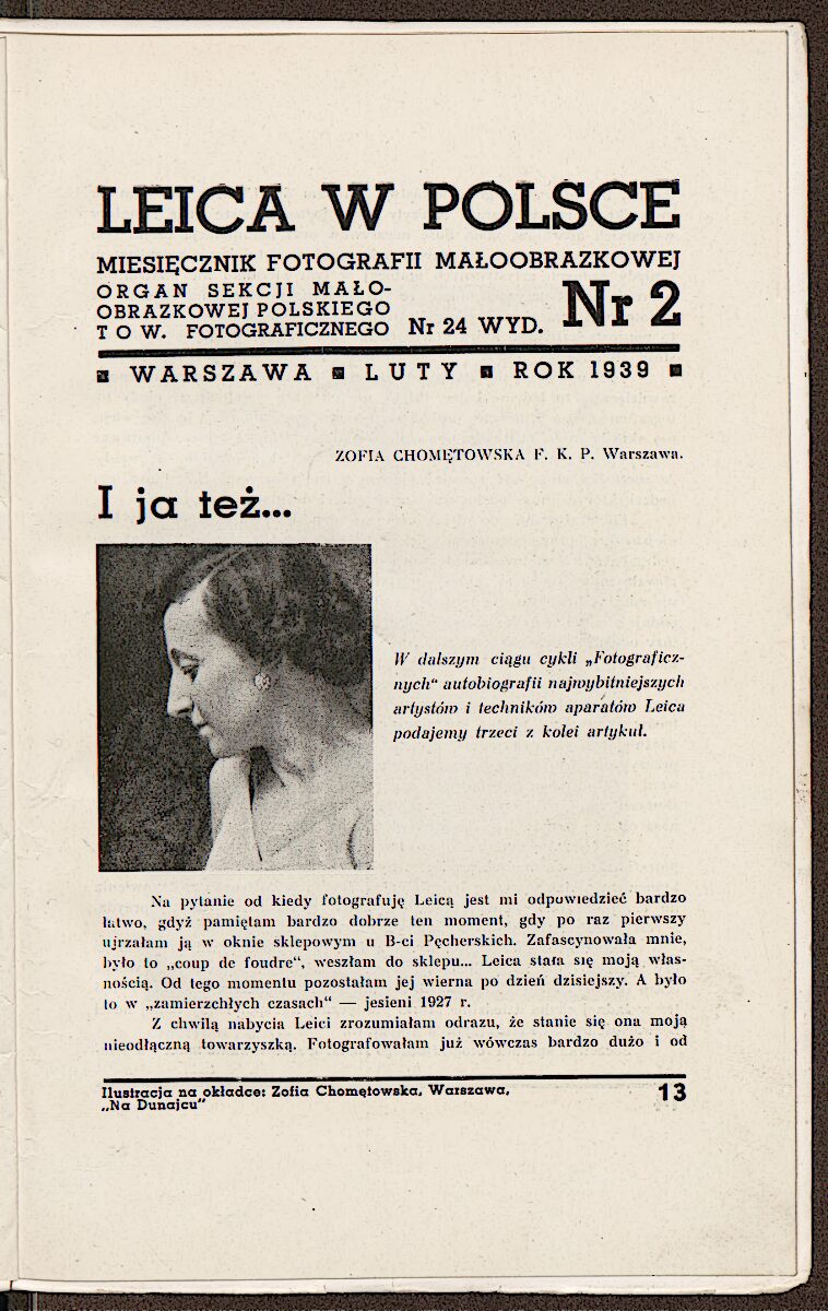 Małoformatowy aparat Leica Chomętowska kupiła sobie jeszcze jesienią 1927 roku. Właśnie nim fotografowała Polesie, a później przedwojenną i powojenną Warszawę. Aparat był bardzo wygodny, a dzięki niewielkim rozmiarom pozwalał na maksymalną mobilność, dzięki czemu fotografka mogła wybierać prawie każde miejsce do zdjęć: od panoramicznych krajobrazów po wąskie ulice miast. W jednym z wywiadów dla magazynu fotograficznego „Leica w Polsce” później powie: