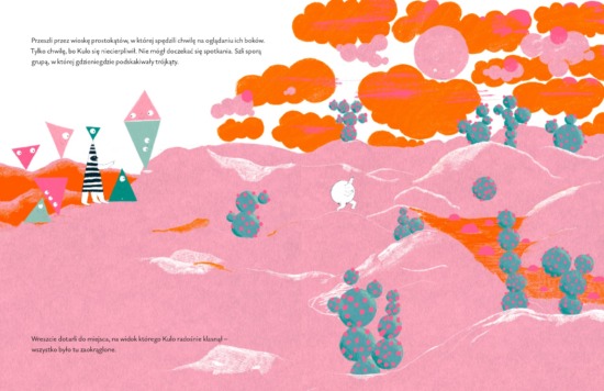 Kopyt nie tylko w ciekawy sposób oswoiła podstawy matematyki, lecz także zadbała o wyjątkowe ilustracje, które przyciągają wzrok i pomagają dzieciom lepiej zrozumieć omawiane pojęcia. Zaryzykowałabym nawet stwierdzenie, że obraz zdecydowanie dominuje nad tekstem. „Trio i Kulo” nie jest książką, która zaskakuje rewolucyjnymi odkryciami, ale to właśnie dzięki ilustracjom całkowicie spełnia swoją funkcję. W niewymuszony sposób wprowadza najmłodszych w świat matematyki, przybliżając podstawowe pojęcia, nieraz przecież odstraszające swoją surowością. U Kopyt cyfry i figury geometryczne są pełne ciepła – a to nie lada osiągnięcie.