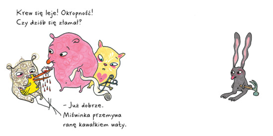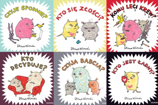 Stina Wirsén [ur. 1968] jest jedną z najbardziej rozpoznawalnych współczesnych szwedzkich ilustratorek i autorek książek dla dzieci. Jej twórczość wpisuje się w tradycję dziecięcej literatury skandynawskiej, która od dziesięcioleci przełamuje tabu związane z dzieciństwem, od Pippi Pończoszanki Astrid Lindgren po współczesne realizacje książki obrazkowej. U Wirsén dziecko nie jest traktowane jako „niedorosły dorosły”, lecz jako samodzielny podmiot doświadczeń, obdarzony własną wrażliwością, językiem i emocjami. Publikowana w Polsce od 2008 roku przez wydawnictwo „Zakamarki” seria krótkich form literackich dla najmłodszych (pisaliśmy już o niej w „KL dzieciom” kilka lat temu) w całości podporządkowana jest właśnie dziecięcemu światu, pełnemu emocji i niespodziewanych wypadków. Bohaterami są tu zwierzęta o nieostro zarysowanych kształtach, które w swojej codzienności zmagają się z sytuacjami dobrze znanymi każdemu dziecku.