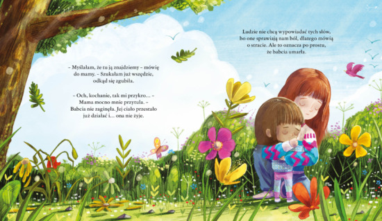 Książka Cariad Lloyd przywołuje taki właśnie moment. Kilkuletnia bohaterka tego picturebooka pewnego dnia dowiaduje się od swojej mamy, że „babci już nie ma z nami”, że zasnęła. Rezolutna dziewczynka stwierdza jednak, że przecież nie można spać całymi dniami, i próbuje odkryć, gdzie jej ukochana babcia właściwie przebywa. W pewnym momencie, zasłyszawszy rozmowę mamy z sąsiadką, dochodzi do wniosku, że babcia zaginęła, zaczyna więc jej szukać we wszystkich miejscach, które razem odwiedzały i o których wie, że babcia je lubi. W końcu mama uświadamia sobie, że jej mądra córeczka potrzebuje rozmowy i taką też odbywają. To absolutnie znakomity przykład szczerej, prostej rozmowy, którą można (i warto!) przeprowadzić z małym dzieckiem, aby wytłumaczyć mu sytuację, nie pozastawiać z domysłami, dać poczucie bezpieczeństwa i po prostu być blisko. W tej sytuacji obie strony wzmacniają swoją relację i wspólnie stają w obliczu straty.