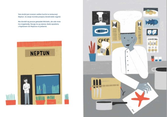 Zniknięcie ryb jest dla Tomása wyjątkowo bolesne, bo – jak można dowiedzieć się z zaprezentowanej na czerwonych rozkładówkach retrospektywy – dziadek bohatera, zwany Kapitanem, był dzielnym odkrywcą głębin i rybakiem. W jego życiorysie kreślonym pamięcią chłopca nie brakuje też wątków legendarnych: mężczyzna wie wszystko o morzu; rozmawia z rybami, gdy tylko inni nie widzą; podobno złowił kiedyś syrenę, choć tego ani nie potwierdził, ani temu nie zaprzeczył. A także, jak na stereotypowego żeglarza przystało, miał kobietę w każdym porcie, a zbiór ich fotografii – jak mi się wydaje, niezbyt udanie – narrator porównał do kolekcjonowania kart z piłkarzami. Mimo tego zgrzytu wykreowany w „O rybach, które zniknęły” obraz dziedziczenia miłości do morza świetnie buduje poczucie przywiązania do świata przyrody, a troska o środowisko naturalne jest tym, co łączy starsze i młodsze pokolenia. Osoby zamieszkujące A-Ver-O-Mar martwią się o przyszłość tak ryb, jak i swoją własną, jeszcze większego znaczenia nabiera więc imię widocznego na okładce statku „Nadzieja”, którym pływa Kapitan.
