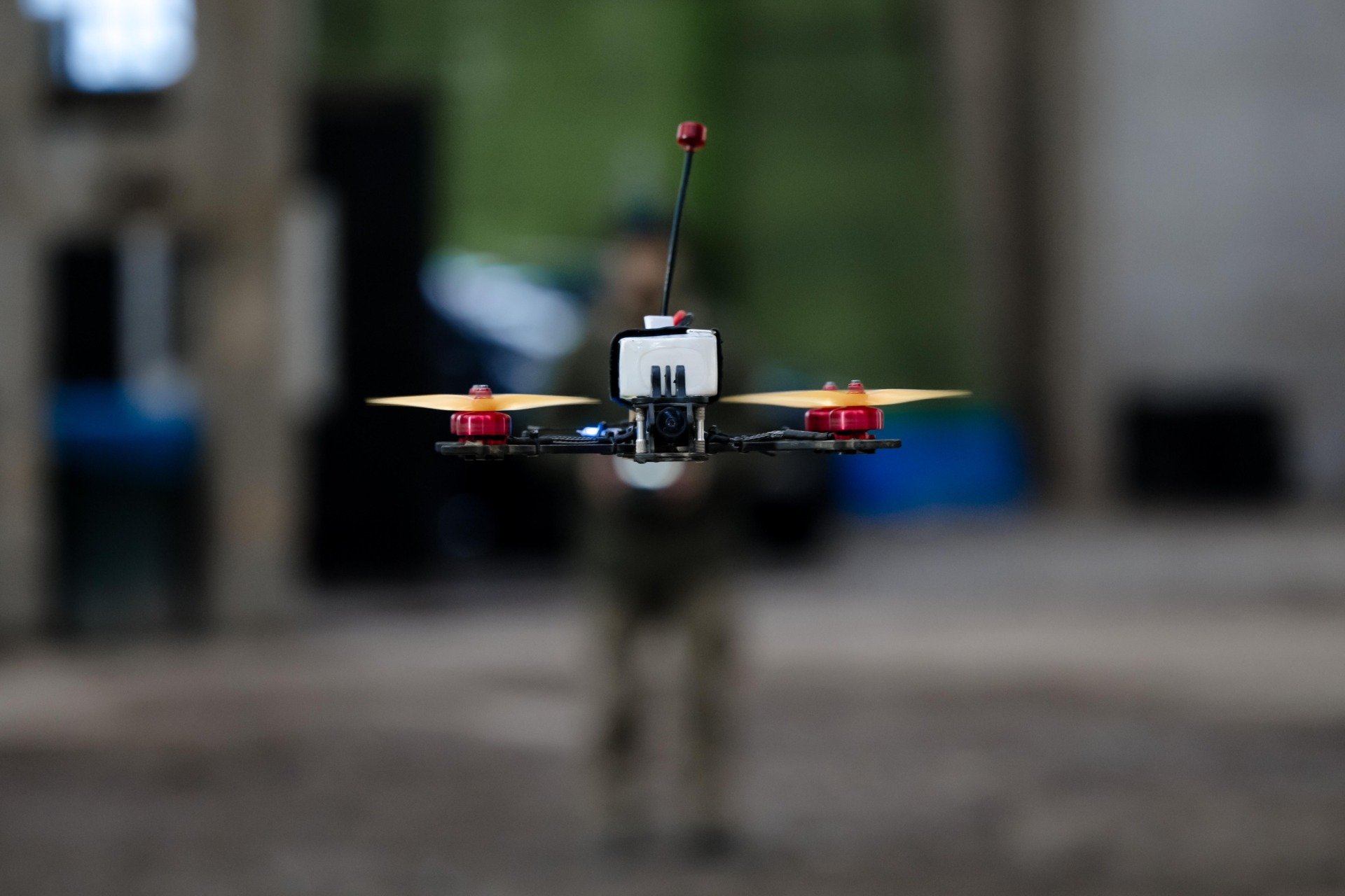 W do niedawna opuszczonym budynku w Kijowie mieści się jedna z pierwszych szkół operatorów w kraju — KillHouse Academy. Ogromna hala, tor przeszkód z siatek, drutów, atrap utrudnień terenowych. Obok kontenery z symulatorami FPV; na ścianach namalowane szewrony jednostek, które przeszły tu szkolenia. W tle buczy kilka generatorów — po nocnych nalotach pół miasta tak brzmi, jak lodówka, która nie potrafi się zdecydować, czy działa.