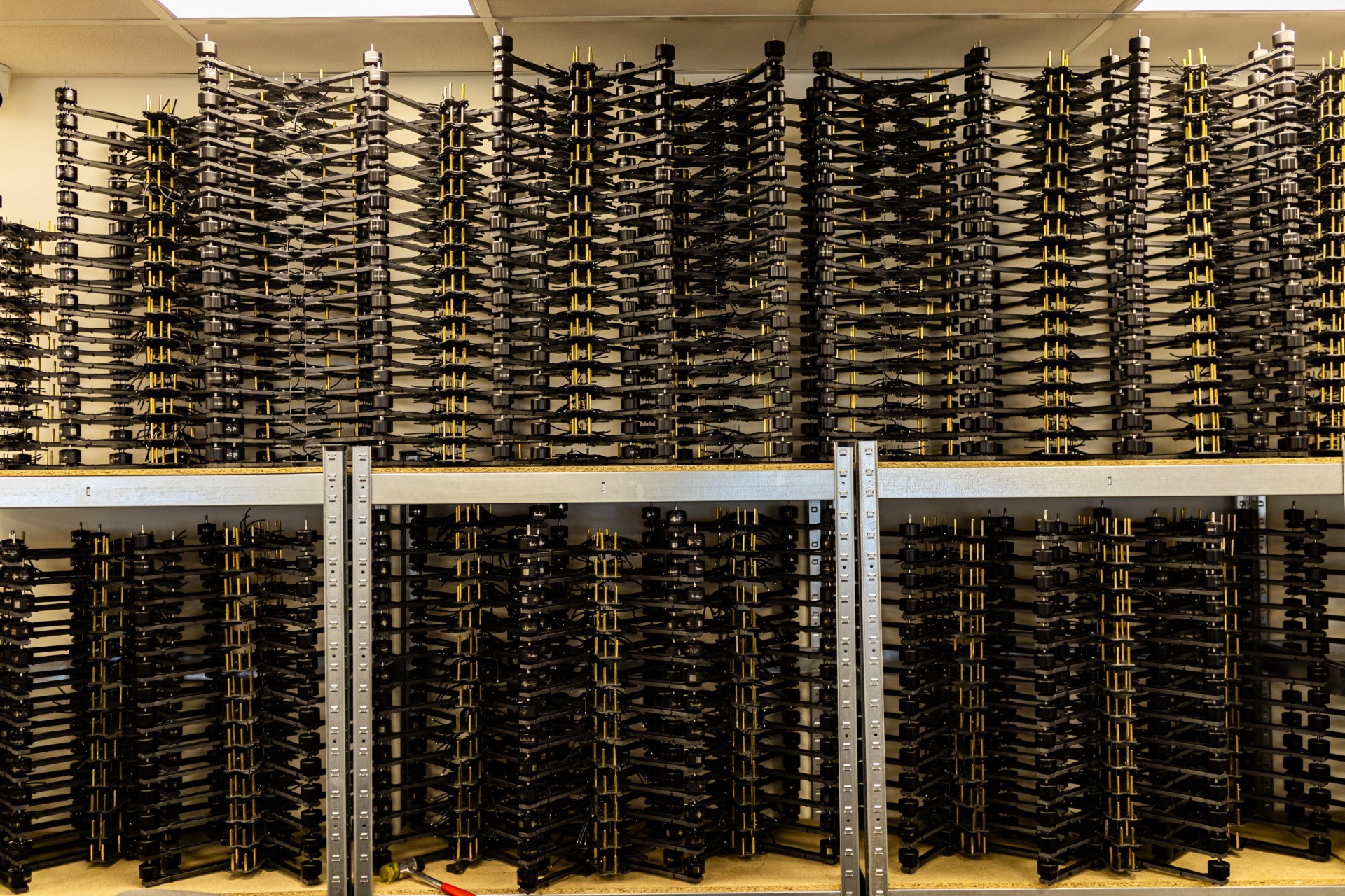 Na stałe działają dwie ekipy w Kijowie i Lwowie — po około sześćdziesiąt osób każda. Reszta to rozproszona sieć: ponad dziesięć tysięcy wolontariuszy, którzy wieczorami, po pracy, lutują FPV, repeatery i stacje naziemne. Drony idą potem na testy i następnie trafiają do jednostek.