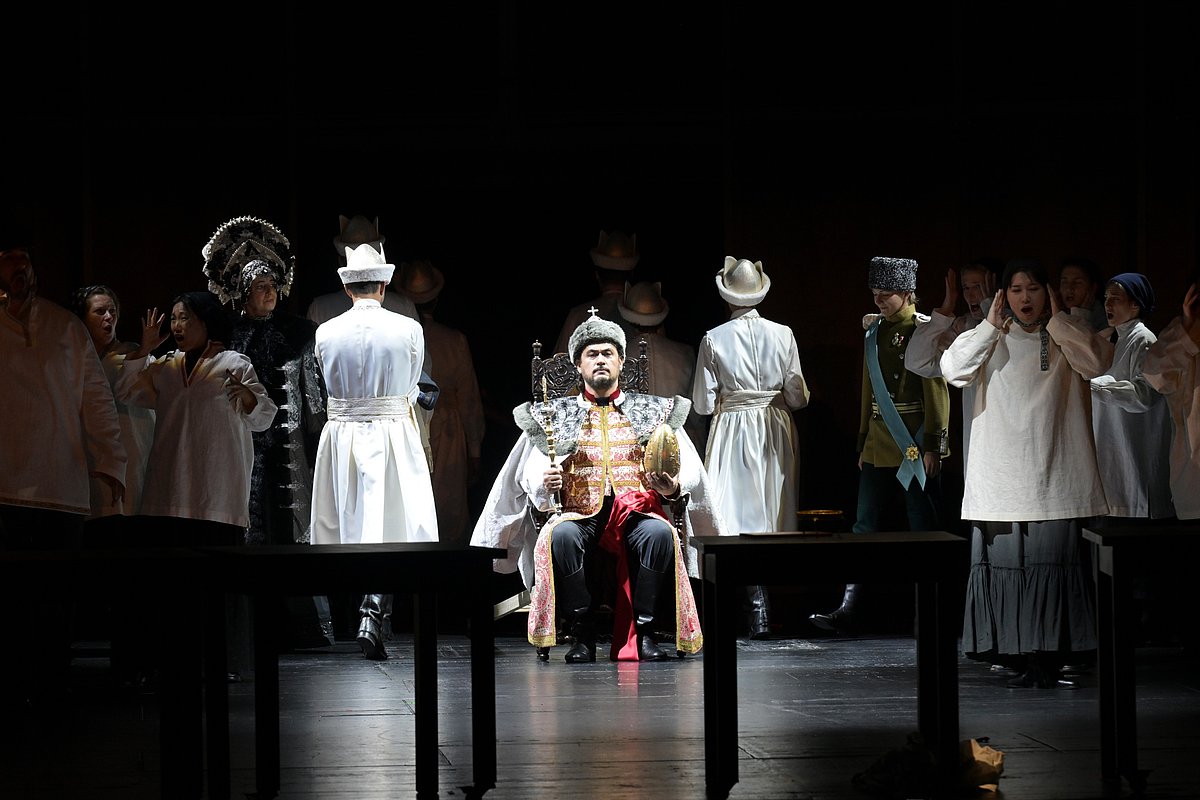 solisci: Anderas Bauer Kanabas (Pimen), Aleksander Cimbaljuk (Borys), Karolina Makuła (Fiodor), AJ Glueckert (Szujski), Sofija Petrović (Maryna Mniszchówna), Michael McCown (Jurodiwyj), Anna Nekhames (Ksenia), Dmitry Golovnin (Grigorij/Dymitr Samozwaniec), Inho Yeong (Warłam), Thomas Faulkner (Rangoni), Peter Marsch (Misaił), Claudia Mahnke (karczmarka), w pozostałych rolach: Judita Nagyova, Mikołaj Trąbka, Morgan-Andrew King, Frederic Jost, Magdalena Tomczuk, Chloe Robbins, Grace Choi, Tiina Lonnmark, Emma Ibanez, Tadas Almantas