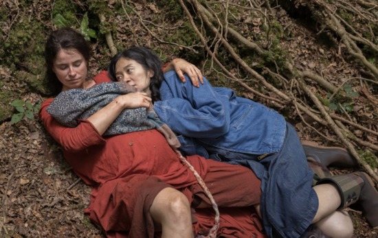 Stworzyła ona kostiumy głównych postaci ze szczególnego rodzaju tkaniny zwanej bast fibre / phloem cloth, czyli włókna łykowego, zbieranego pod korą drzew i pozyskiwanego przy użyciu mikroorganizmów. Naturalne procesy rośnięcia włókien oddają symbolicznie połączenie mieszkańców z otaczającymi lasami, jakby stąd wyrośli i tym byli w swoim rdzeniu. Tradycyjne barwniki roślinne były jednak zbyt wrażliwe, żeby wystawiać je na działanie światła podczas długotrwałej ekspozycji na planie, więc do barwienia tkanin użyto kolorów, które na pewno nie zmieniłyby nasycenia podczas eksploatacji. Kubraki, gorsety, koszule zmieniają walor koloru w miarę rozwoju akcji. Ziemista tonacja kostiumów Agnes i błękity odzienia Willa tężeją, oddalają się od siebie jak bieguny życiowego doświadczenia i idei. Mogą też one oznaczać dwa kierunki: via activa versus via contemplativa, jak w postaciach z romantycznego malowidła Jacka Malczewskiego „Hamlet polski” [1903]. Zmysłowa, pobudzona Polonia stoi po lewej od Hamleta – to kobieta w makowym wieńcu i z odsłoniętymi piersiami, zrywająca kajdany. Druga, Polonia zniewolona, godzi się ze swoją sytuacją – ciasno opleciona i siwa, wpatrując ze smutkiem w to, co ją ogranicza. Pomiędzy nimi Hamlet zrywa płatki margerytki, jakby wróżąc – kocha, nie kocha? – i wybierając swój los.