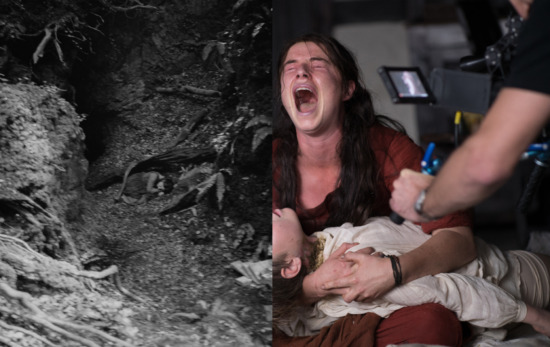 Fundamentalne wybory dotyczyły drzewa – kluczowego miejsca akcji, poszukiwanego w lasach Lidney Park na dokumentacji wiosną – choć latem miało ono wyglądać już zupełnie inaczej w związku z bujną roślinnością. Operator i reżyserka pozostawili więc całą ekipę i poszli na spacer po lesie, gdzie po pół godzinie znaleźli to właśnie, jedyne, wyjątkowe. Żal relacjonuje: „Chloe chciała, żeby pień miał w korzeniach mroczną jamę – niczym waginę, wspólny pień, z którego wyrastają dwa drzewa. Z tego powodu odrzuciła też potem przestrzeń prawdziwego teatru The Globe, gdzie miały powstać zdjęcia; powiedziała wtedy: „Słuchajcie, nie możemy tego tutaj kręcić, bo ta przestrzeń zupełnie nie przypomina wnętrza martwego drzewa”. Na to Fiona Crombie, scenografka: „Dobrze, Chloe, zbuduję ci taki teatr, bo miejsce musi być wiarygodne”.