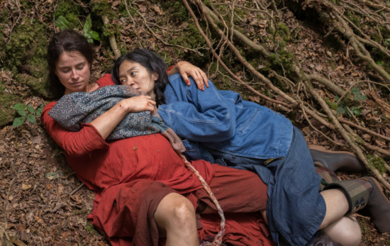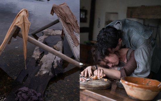 Stworzyła ona kostiumy głównych postaci ze szczególnego rodzaju tkaniny zwanej bast fibre / phloem cloth, czyli włókna łykowego, zbieranego pod korą drzew i pozyskiwanego przy użyciu mikroorganizmów. Naturalne procesy rośnięcia włókien oddają symbolicznie połączenie mieszkańców z otaczającymi lasami, jakby stąd wyrośli i tym byli w swoim rdzeniu. Tradycyjne barwniki roślinne były jednak zbyt wrażliwe, żeby wystawiać je na działanie światła podczas długotrwałej ekspozycji na planie, więc do barwienia tkanin użyto kolorów, które na pewno nie zmieniłyby nasycenia podczas eksploatacji. Kubraki, gorsety, koszule zmieniają walor koloru w miarę rozwoju akcji. Ziemista tonacja kostiumów Agnes i błękity odzienia Willa tężeją, oddalają się od siebie jak bieguny życiowego doświadczenia i idei. Mogą też one oznaczać dwa kierunki: via activa versus via contemplativa, jak w postaciach z romantycznego malowidła Jacka Malczewskiego „Hamlet polski” [1903]. Zmysłowa, pobudzona Polonia stoi po lewej od Hamleta – to kobieta w makowym wieńcu i z odsłoniętymi piersiami, zrywająca kajdany. Druga, Polonia zniewolona, godzi się ze swoją sytuacją – ciasno opleciona i siwa, wpatrując ze smutkiem w to, co ją ogranicza. Pomiędzy nimi Hamlet zrywa płatki margerytki, jakby wróżąc – kocha, nie kocha? – i wybierając swój los.