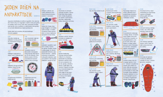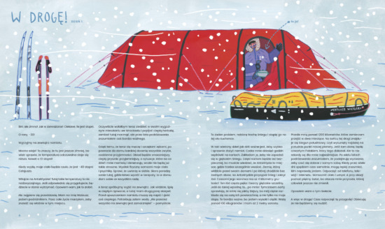 Książka jest nie tylko ciekawa i mądra, lecz także przepiękna. Duży format, twarda oprawa, solidna objętość sprawiają, że naprawdę warto ją mieć. Ilustracje autorstwa Joanny Czaplewskiej doskonale uzupełniają treść. W zasadzie są perfekcyjnie wkomponowanym elementem tekstu, nie osobną warstwą książki. Ilustratorka świetnie sobie radzi zarówno z infografikami, mapami, portretami zwierząt i ludzi, jak i z surowymi, ale magicznymi krajobrazami lodowego kontynentu. Dzięki temu do ręki czytelnika trafia swego rodzaju atlas przygody, który można czytać od A do Z lub na wyrywki. I właśnie to lubię w książkach najbardziej: gdy nie są „jednorazowe”. „Antarktyda” to publikacja, do której można wracać z wielu powodów – dla wyprawy Mateusza (związanych z nią emocji lub technikaliów), dla wiedzy (przyrodniczej czy historycznej) albo dla konkretnej ciekawostki (na przykład dlaczego płetwonogi połykają kamienie; które zwierzę w Antarktyce jest najważniejsze; czy jak rozstawić namiot na zmarzniętym śniegu).
