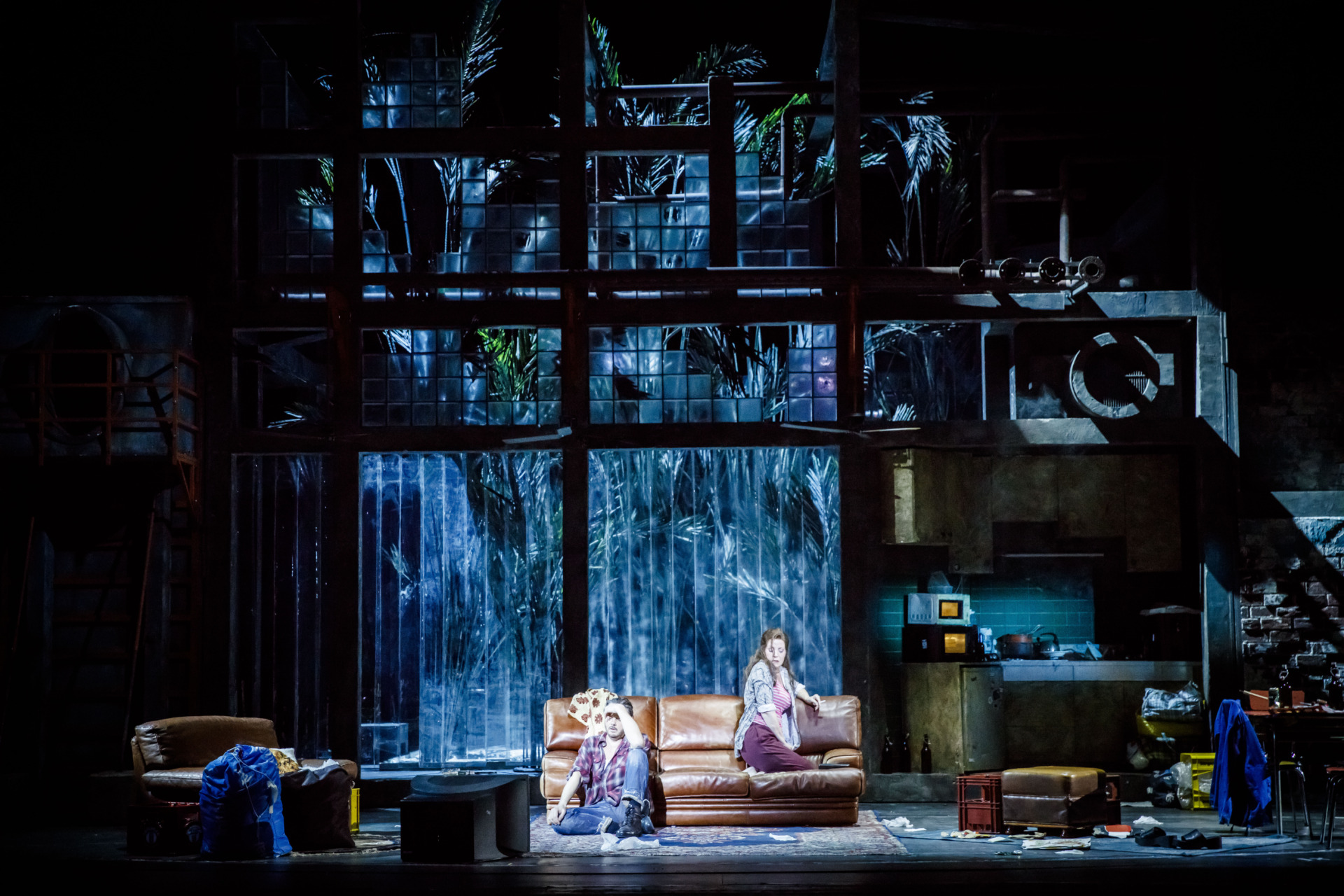 Zmieściła się natomiast na scenie scenografia. Wyglądała ona na twórczą interpretację Elektrowni Powiśle sprzed i po remoncie jednocześnie. Oczywiście scenografia ustawiona została na obrotówce, żeby coś, cokolwiek, się „działo”. Wszak zejście z obrotówki, to dla śpiewaka poważne zadanie aktorskie.