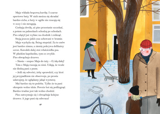 Mnóstwo jest ciepła w tej książce. Nawet wtedy, gdy jej bohaterowie trzęsą się z zimna na mrozie. A może zwłaszcza wtedy? Bo kiedy Mai marzną policzki i nos, tata „zdejmuje rękawiczkę i ogrzewa twarz Mai swoją dużą, ciepłą dłonią”.