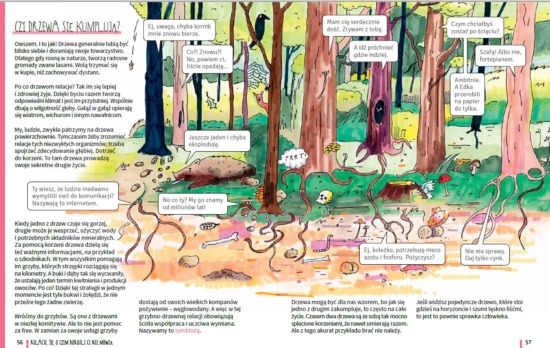 Na uwagę zasługuje również konsekwentnie nieantropocentryczna perspektywa. Relacje przedstawiane są także jako zjawiska biologiczne i ekologiczne – między organizmami w ekosystemach – co poszerza pole interpretacyjne i wpisuje publikację w nowoczesne podejście do edukacji przyrodniczej i społecznej. Tego typu ujęcie, choć obecne już w literaturze dziecięcej, nadal nie jest standardem, dlatego jego obecność należy uznać za istotny atut. Autorzy umiejętnie osadzają rozważania w kontekście współczesnej kultury. Odniesienia do zjawisk takich jak Gwiezdne wojny czy Taylor Swift i jej fandom pełnią funkcję nie tylko ilustracyjną, lecz także interpretacyjną – pomagają uchwycić mechanizmy relacji w środowiskach bliskich młodemu odbiorcy.